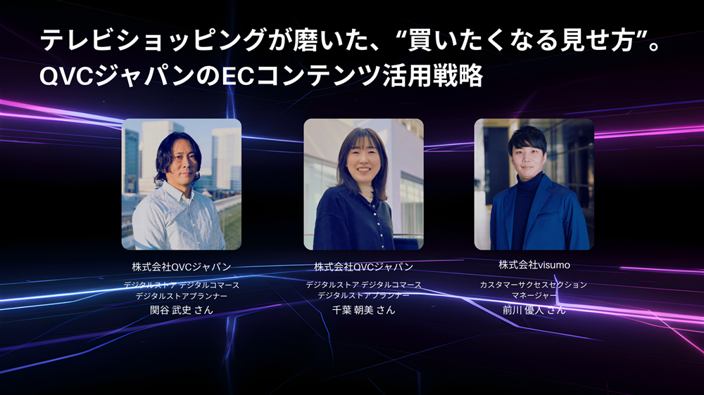 今回は、QVCジャパン様の関谷様、千葉様をゲストに迎え、「visumo活用で実現した “売れるコンテンツ” のつくり方」についてお話を伺いました。