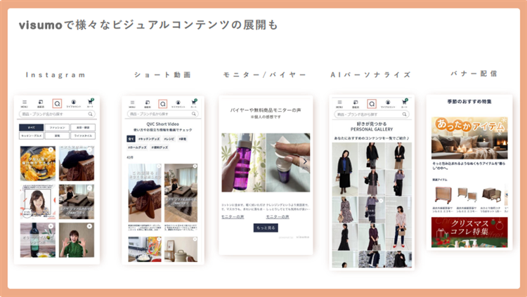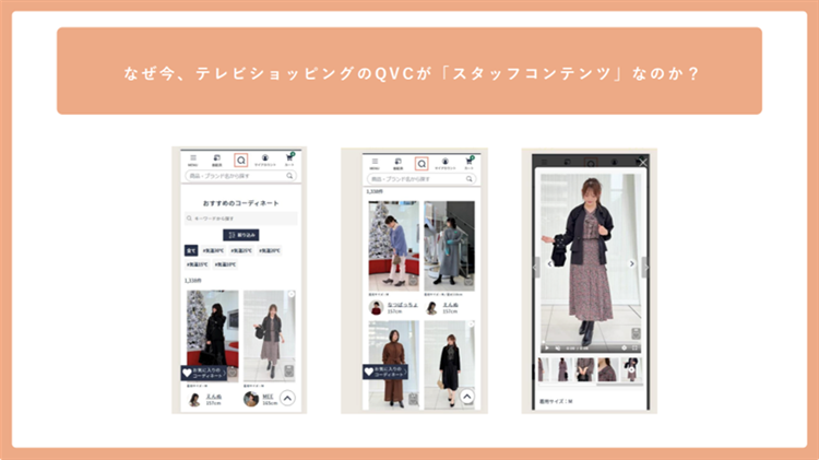 例えば、QVCではスタッフ投稿や動画コンテンツを、商品詳細ページやカテゴリページに自然に溶け込む形で配置をしています。