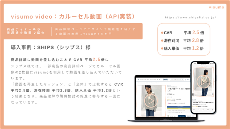 その中でも、商品詳細ページに掲載している商品の着用動画は、動画がない場合の数値に比べて、CVRが平均2.5倍まで伸長しました。
