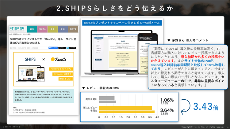 設立から50年という歴史に加え、長期的なCRMの取り組みやID基盤整備がSHIPSを支える土台となっており、顧客への信頼感に繋がっています。